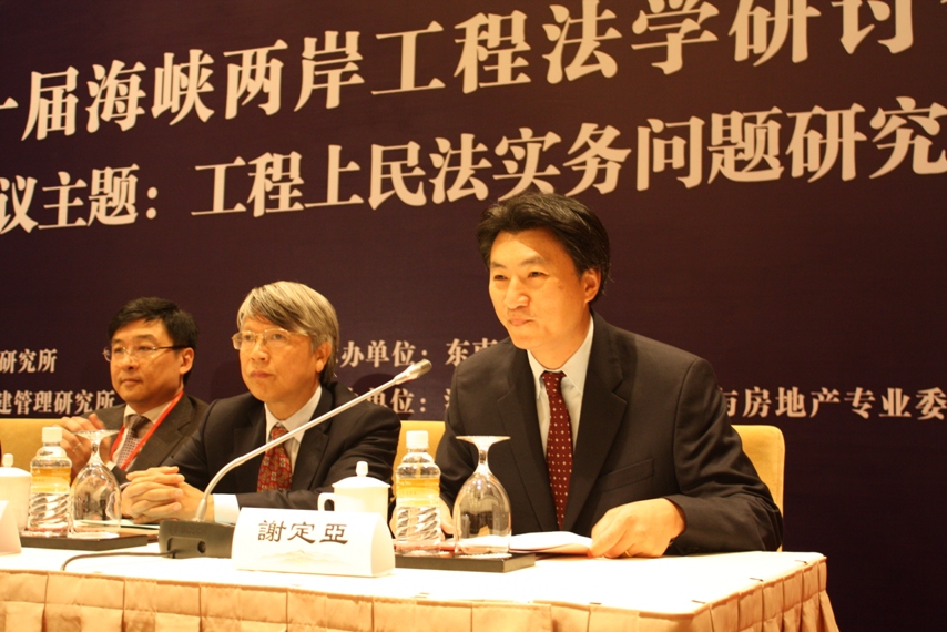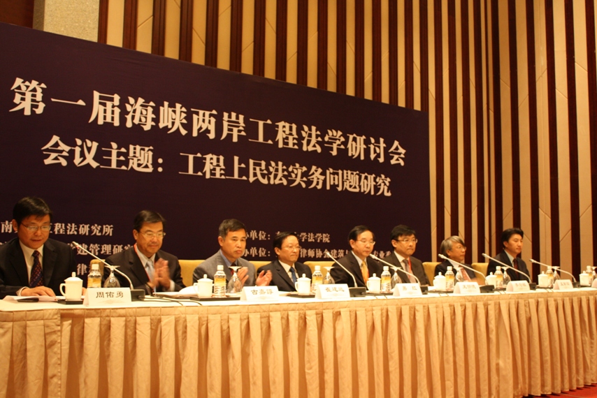 2009年10月27日,“第一届海峡两岸工程法学研讨会”在南京市中山陵紫金山庄会议中心隆重开幕。本次研讨会由366net必赢官网工程法研究所、台湾中央大学营建管理研究所、台湾政治大学法律科际整合研究所主办,366net必赢官网承办,江苏省律师协会建筑与房地产委员会协办,江苏致邦律师事务所参办。366net必赢官网校长易红、台湾访问团团长谢定亚、中国法学会民法学研究会副会长崔建远、台湾工程法学会理事长王明德等出席开幕式并发表致辞。
