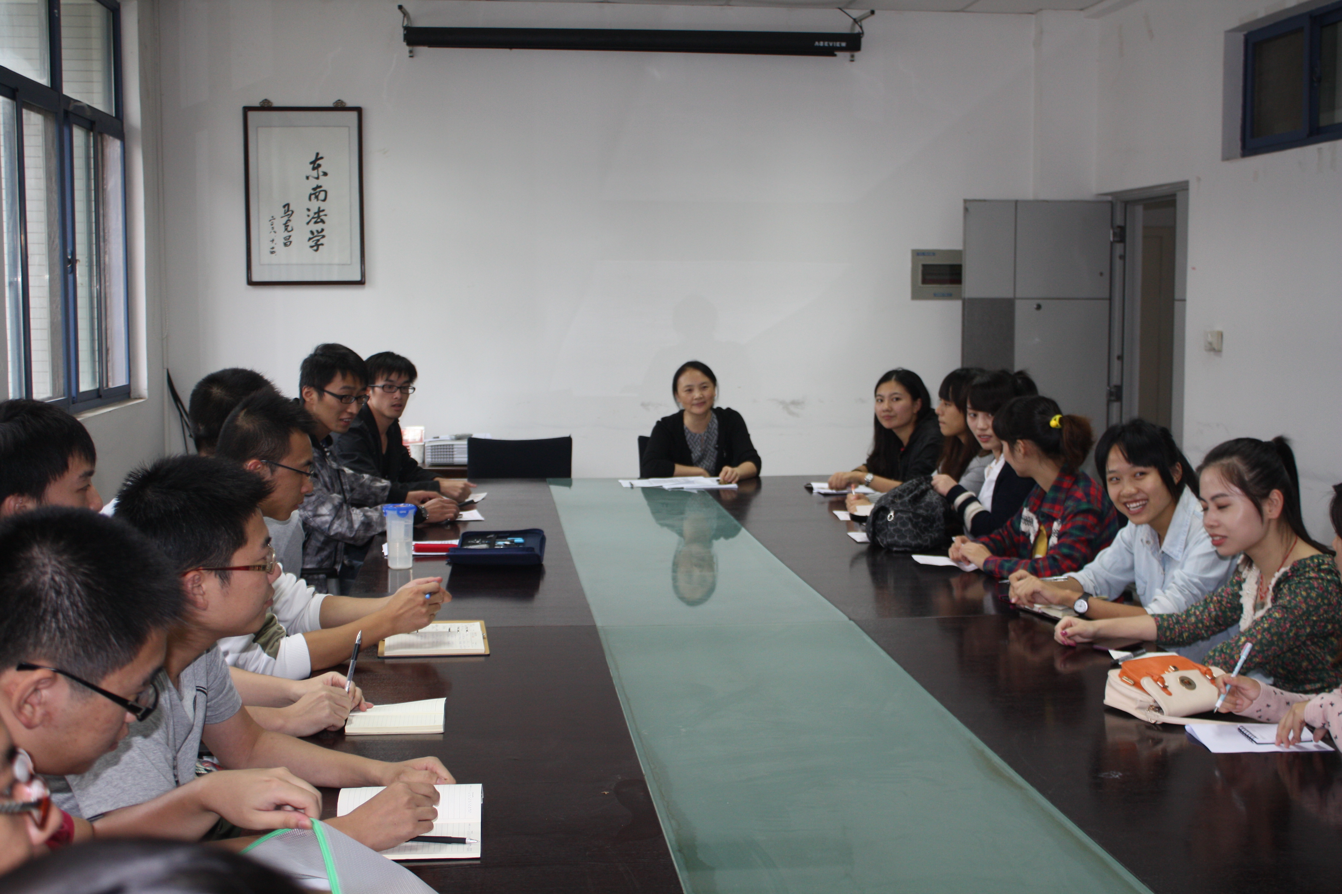 9月13日下午14时许,366net必赢官网会议室30个12级法硕新生济济一堂,在孟红老师的主持下,就12日在南京市中级人民法院旁听庭审涉及的法律题进行分享交流,开展研讨性学习。