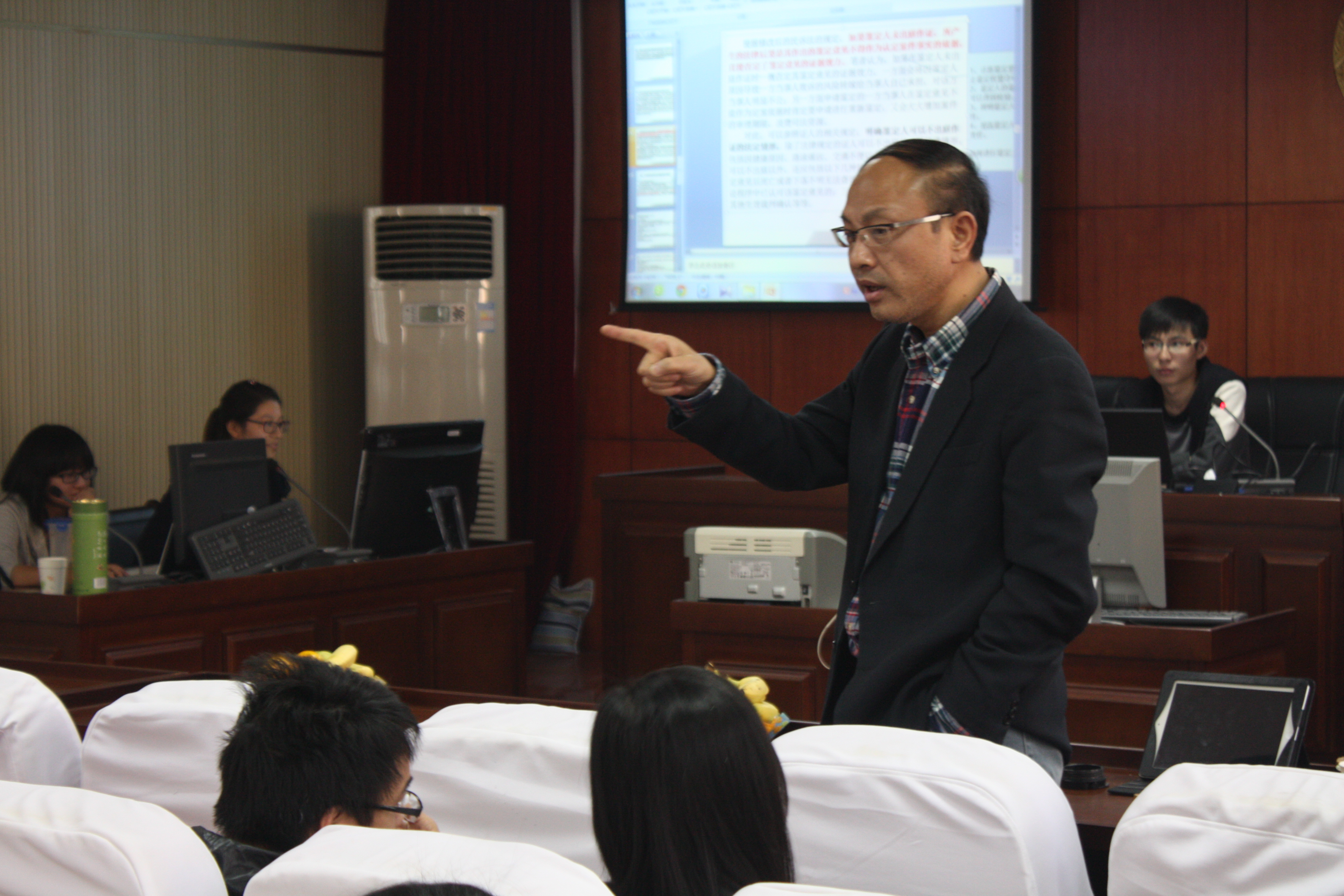 在两场汇报进行时,两位老师针对报告中的一些问题对报告同学进行具体的提问,在不断提问与答复过程中,在场的同学们也都参与进来各抒己见,大家的注意力和热情在整场报告的浓厚的学术探讨氛围下更加的集中和高涨,同学们都对该场报告的主题有了自己的认识和看法。报告中叶老师还提及学术的严谨性,以及作为法律人应有的职业操守,对同学们提出严格的要求和殷切的期望。
