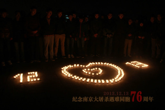 12月13日,是遇难同胞整整76周年纪念日。当晚,包括366net必赢官网同学在内的近百位同学在图书馆门前点燃了显示有“12.13”、“76”字样的蜡烛,莹莹烛光中,同学们深切的悼念了在南京大屠杀遇难的同胞们,我们不能忘记昨日的耻辱,我们深知自强不息使我们唯一的出路,我们渴望用自己的双手完成振兴中华的伟大使命。我们愤怒、我们不平,但我们依然渴望世界和平,我们不能原谅,不能宽恕,但我们却依然维护安宁,我们希望世界人民能够和平共处、共同发展。愿逝者安息,愿世界和平。