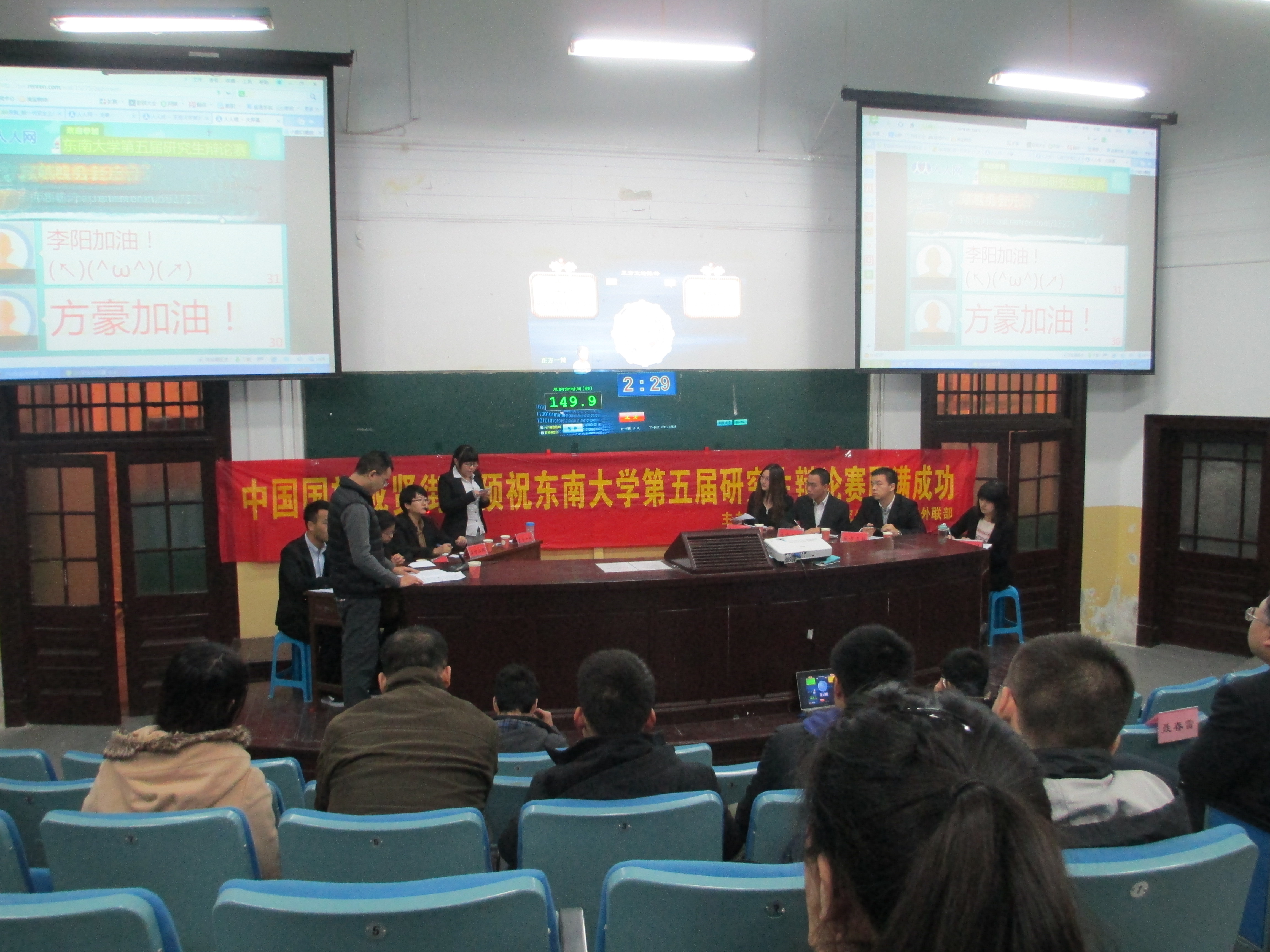 12月15日晚,366net必赢官网第五届研究生辩论赛总决赛在四牌楼校区成功举办,366net必赢官网辩论队一路过关斩将,顺利进入决赛并最终获得亚军的好成绩,李昂获得“最佳辩手”称号并获“最佳人气奖”,赵博获得“最佳思维奖”。