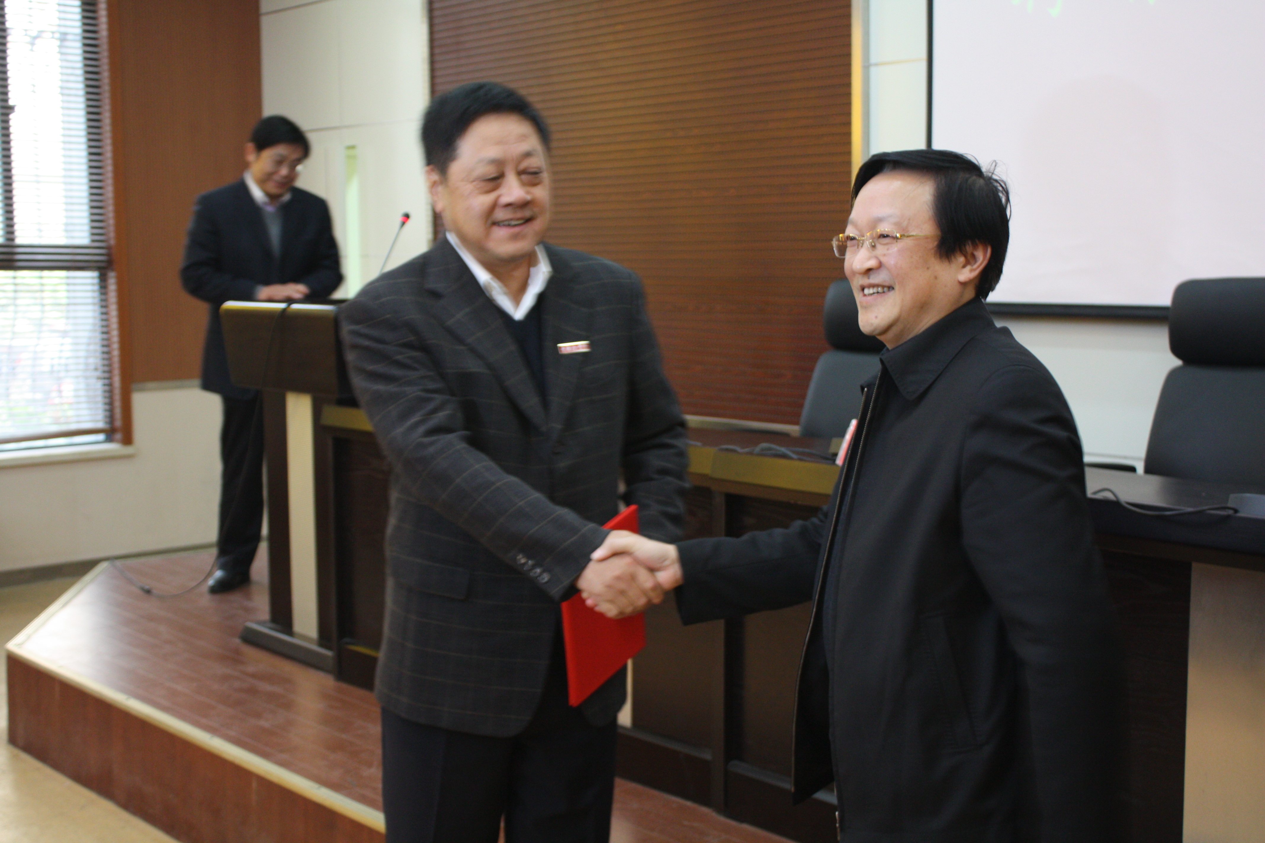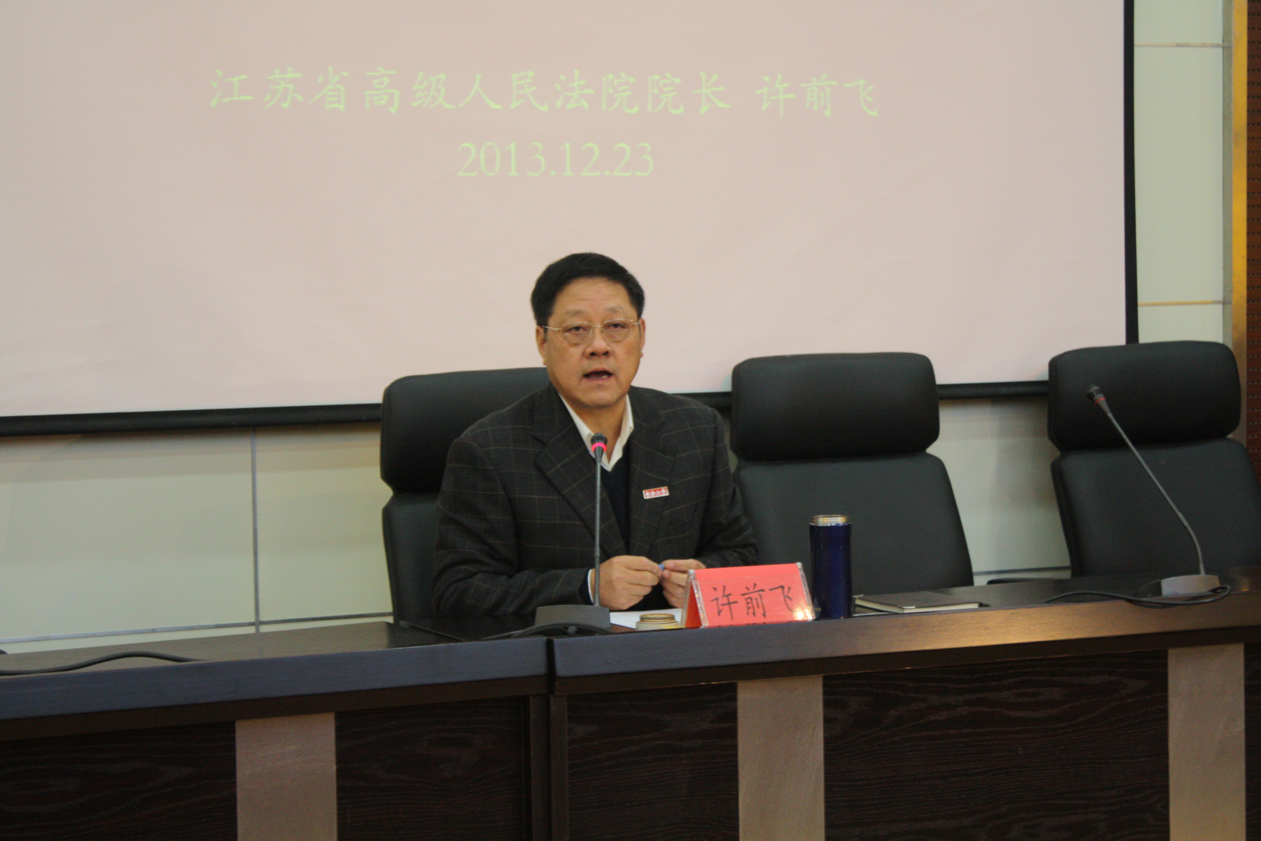 2013年12月23日下午,江苏省高级人民法院院长许前飞同志受聘366net必赢官网兼职教授聘任仪式暨学术报告会在我校九龙湖校区人文报告厅隆重举行。366net必赢官网校长易红出席受聘仪式,并为许前飞院长颁发聘书并佩戴校徽。仪式由366net必赢官网院长周佑勇教授主持,学院200余名师生参加了聘任仪式。