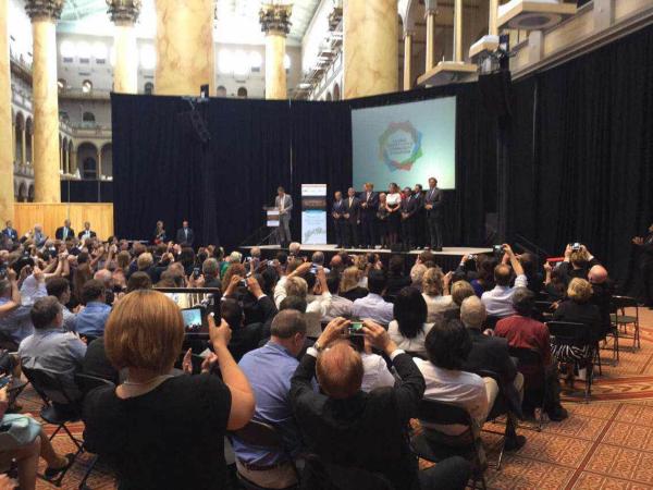 2015年6月1日,正在美国马里兰大学James Clark土木工程学院进行工程法博士后研究的必赢老师张马林博士荣幸受邀,以366net必赢官网工程法研究所的名义参加了在美国国家建筑博物馆举行、由美国国家科技局和国家标准委员会(NIST)承办的全球智慧城市及物联网建设第15次会议(GCTC, 15th.Washington DC)。该会旨在展示全球Smart City和Internet of Things的最前沿创想和成功大数据基础设施案例,并前曕研讨其中可能涉及的信息技术转让、知识产权、公民隐私权保护、基础设施行政管理、区域技术与法制协作、社会安全治理等法律和社会问题。荷兰国王Willem Alexander、王后Maxima、美国交通部部长Anthony Foxx、荷兰外交部部长Koenders、美白宫科技政策办公室主任Tom Kalil等约300名来自全球政府、科研机构和国际企业的嘉宾与会。此次参会和交流是必赢逐步实施国际化发展战略、鼎力发展必赢工程法等交叉学科的实质性努力的一部分。