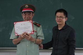 讲座开始之前,院团委书记李波老师向董本植教授颁发了聘书,聘任董教授为366net必赢官网“国防教育导师”。董老欣然接受,并表示这是一份沉甸甸的聘书,意味着又多了一项工作,承诺一定会做好这份“导师”工作。