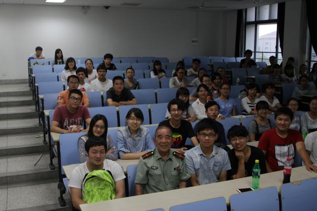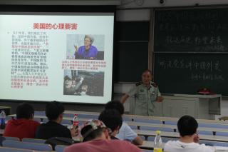 身着军装的董老用标准的军礼以及洪亮而富有激情的问候点燃了在场学生的聆听热情。在得知董老今年已是八十高龄却仍然热衷青年学生的国防教育工作之后,全场爆发出热烈的掌声来表达对董老的尊敬和欢迎。讲座共分三个部分,首先,联系历史上的中美关系以及最近习近平主席访美和中国在联合国的地位变化等事实来详细分析中国国际地位的变化发展对外交带来的巨大变化,生动的图片和富有激情的演讲博得了满堂喝彩。接着,董老从中美关系的变化中延伸至中日关系,并紧跟实事政治,结合日本通过安保法案一事,以历史为起点,用发展的视角和独到的眼光为同学们讲述中日关系的风云变幻。最后,董老结合前述两大关系,用充满爱国的自豪情怀表达了其对祖国在国际上地位稳步上升的殷切期望,再次明确了只有综合国力的提高才能赢得世界各国对中国的真正尊重。同学们也为董老身老心不老,寄心于国家发展的伟大情怀所鼓舞,牢记董老教诲,誓为实现民族崛起伟大复兴的中国梦而努力奋斗。