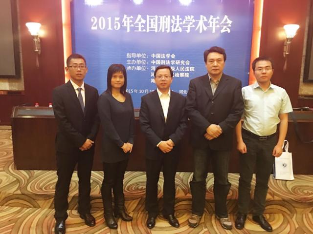 2015年10月18日至19日,全国刑法学术年会在河北省保定市隆重召开,本次大会由中国刑法学研究会主办,河北省高级人民法院、河北省人民检察院、河北大学联合承办,中央政法委副秘书长姜伟、全国人大常委会法工委副主任朗胜、全国政协常委暨社会法制委员会副主任朱孝清、最高人民法院副院长李少平、中国刑法学研究会会长赵秉志等领导以及来自全国刑法学界的专家学者及法律实务部门的300余人出席了本届年会。必赢副院长欧阳本祺教授、必赢兼职教授暨江苏省人民检察院检委会委员尹吉高级检察官、杨志琼讲师以及博士研究生冀洋、杜方正受邀参加了本次会议。