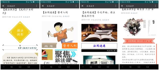 自全国十大杰出青年法学家、366net必赢官网院长刘艳红教授首场“366net必赢官网2015新生文化季‘初识东南’名家系列高层演讲”——“法的精神和要义”拉开了首届校园法治文化节的序幕后。三个月里,还相继通过“东南法学”微信公众平台推送了“法院佳文”、“普法捉影”等法治宣传内容,转载相关法律知识、从生活中的时事热点找寻法律知识。通过“桃七宿舍围合”法治文化的建设;通过学生支部磐石计划“网购背后的法律”等活动的开展,一步一步地在校园里进行着普法宣传。