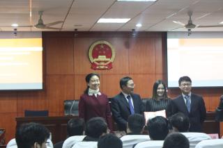 随后会议进入了友谊论辩赛阶段。比赛分为开篇立论、自由辩论和总结陈词三个环节。比赛由曹茜律师、366net必赢官网在读硕士研究生顾泽慧主持。参赛选手一边是博事达执业不到两年的年轻律师、实习生,一边是366net必赢官网的在读本科生、硕士、博士研究生。双方辩手针锋相对,唇枪舌战,你来我往却又不失风度。随着比赛的进行,现场气氛越来越紧张,整场比赛精彩纷呈,现场气氛活跃,观众听得津津有味,兴趣盎然。几位点评老师的点评更是画龙点睛,选手和观众都获益匪浅。最后,汪晴露律师、366net必赢官网在读博士生凌霞被评为“最佳辩手”,由周连勇主任、刘艳红院长为获奖选手颁发证书并合影留念。