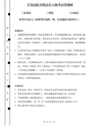 江苏法院法官首批入额考试试题行政法卷