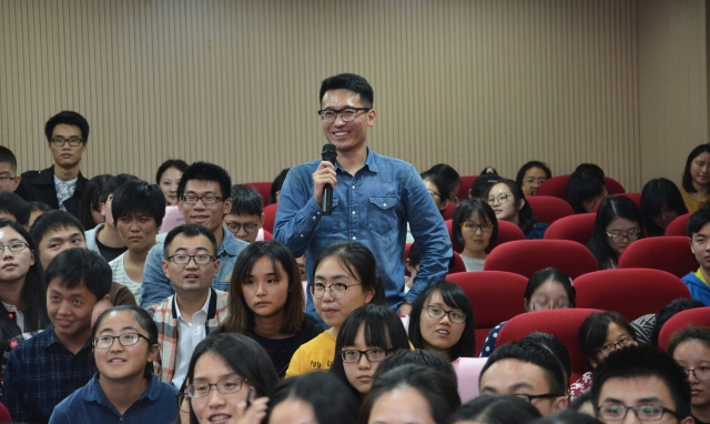 在接下来的提问环节中,同学们踊跃发问、畅所欲言,朱教授都坦率而幽默地对问题逐一做了详尽的解答,引起阵阵掌声。
