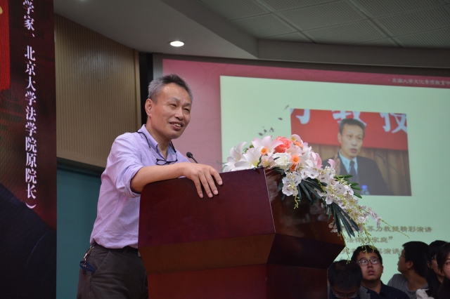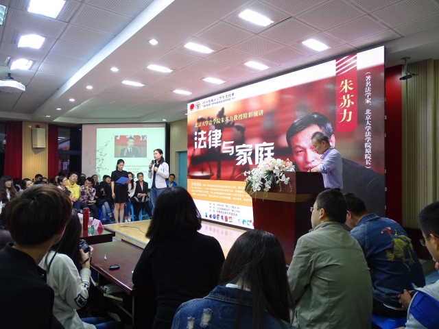 朱苏力教授是我国享有盛誉的著名法学家,留学美国多年,是我国法学界最具代表的学者之一。朱教授的演讲和答问激情飞扬、风趣幽默、材料丰富、论证有力,能极大开阔师生的视野,引起大家的思索,堪称法学与社会学的精神盛宴。(郭雪雯)