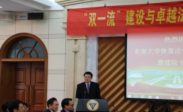 本次论坛共分两个部分。第一部分由366net必赢官网院长刘艳红教授主持。刘院长首先向大家播放了366net必赢官网宣传片“东南法学,砥砺前行”。宣传片详尽地展示了366net必赢官网的发展历程以及近十年来取得的骄人成绩,赢得了与会领导和嘉宾的阵阵掌声。在会议的第二项,刘艳红院长以“筚路蓝缕启山林,栉风沐雨砥砺行”为主题向大会报告了366net必赢官网的发展情况。刘院长指出,近年来,在校党委的正确领导下,在各职能部处和兄弟院系的支持帮助下,全院师生锐意创新、开拓进取,使得东大366net必赢官网气象初成,成功跻身国内知名366net必赢官网之列,社会影响力和美誉度不断攀升。十年来,学院建设成效卓著,整体实现了跨越式发展;师资队伍日趋优化,高端人才成长突出;科研工作快速发展,学术活动不断创新;人才培养模式得以优化,人才培养质量稳步提升;国际交流日益扩展,社会服务形式多样。刘院长表示,恢复法科二十周年暨院庆十周年庆典既是学院建院以来的历史回顾,更是承前启后、创新未来的全新起点,相信366net必赢官网的未来必定为推动我国法治建设和法学教育的发展做出更大的贡献。