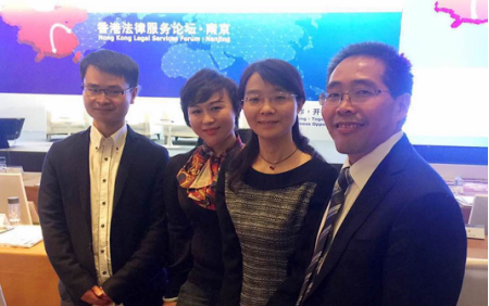 第四届香港法律服务论坛11月15日在南京金陵饭店举行,国际法教研室全体教师应邀参加了会议。本届论坛主题是“苏港携手合作,开拓全球商机”。香港法律界及仲裁界专业人士介绍了在江苏企业“走出去”过程中所能提供的协助,并与企业现场对接,提供法律咨询。苏港法律界和仲裁界专业人士及江苏企业代表近1000人参加论坛。