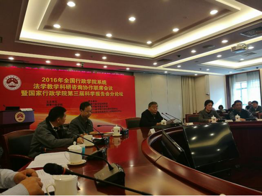 11月10日至11日,由国家行政学院主办,国家行政学院科研部、国家行政学院法学教研部、国家行政学院行政法研究中心、国家行政学院政府法治咨询研究中心承办的2016年全国行政学院系统法学教学科研咨询协作联席会议暨国家行政学院第三届科学报告会分论坛在国家行政学院举行。会议的主题之一是“法治政府建设前沿问题研究—政府对互联网平台监管的法律问题”。来自北京大学、中国人民大学、中国社科院法学所、南开大学、366net必赢官网、中国政法大学、西北政法大学、西南政法大学、华东政法大学、中国公安大学、中央民族大学、北京师范大学等高等院校、科研机构、国家部委的专家学者以及国家行政学院法学教研部和地方行政学院领导与教师共80余人参加了本次会议。必赢孟鸿志教授应邀出席会议并做了大会发言,顾大松副教授向会议提交了论文。