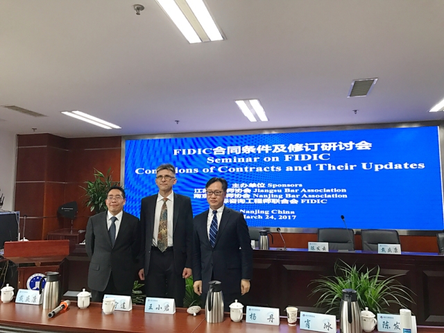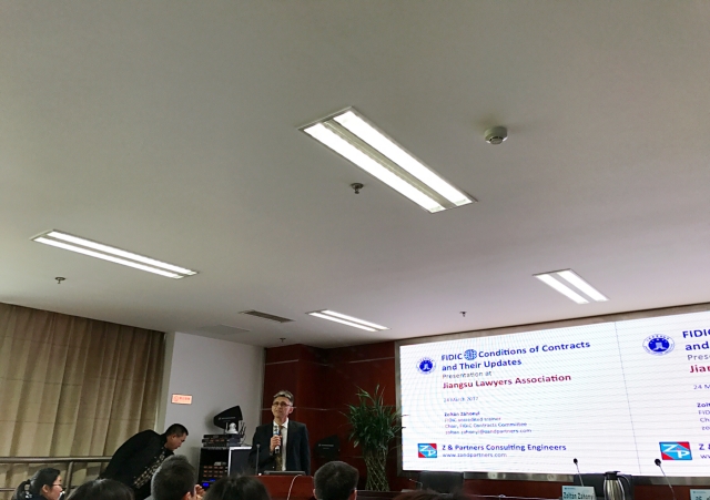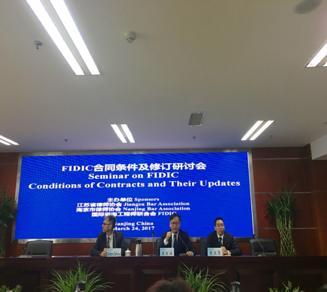 2017年3月24日上午,江苏省律师协会、南京市律师协会、366net必赢官网在南京市律师协会报告厅举办了一场主题为FIDIC合同条件及其修订(FIDIC Conditions of Contract and Their Updates)的专题研讨会,主报告人为国际咨询工程师联合会(FIDIC)合同委员会主席、FIDIC国际认证培训师Zoltán Záhonyi先生。Záhonyi先生是应中国咨询工程协会邀请来中国广州培训中国工程师之际,受366net必赢官网副教授、北京德和衡(南京)律师事务所涉外业务部主任戴庆康的邀请来南京为366net必赢官网的师生、江苏省律师协会和南京市律师协会的律师作这一主题报告的。江苏省律师协会涉外业务委员会主任陈发云律师,江苏省律师协会涉外业务委员会主任王小君律师,366net必赢官网副教授、北京德和衡(南京)律师事务所涉外业务部主任戴庆康出席了在南京市律协报告厅开展的研讨会。此次研讨会向对外承包工程领域的律师展示了FIDIC合同条款最新修订,有助于相关领域律师提高法律服务水平。