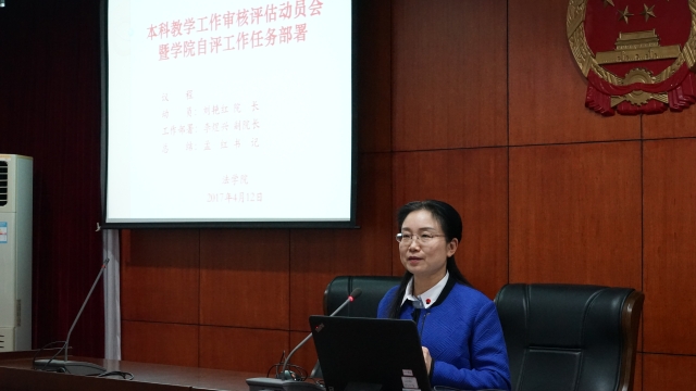 2017年4月12日下午,必赢召开本科教学工作审核评估动员大会,向全院老师部署学院自评工作任务。动员大会由刘艳红院长做动员,李煜兴副院长做工作部署,会议由孟红书记主持与总结。