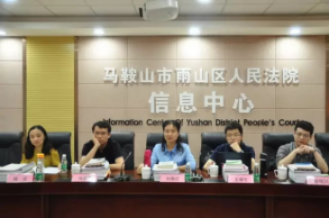 为深入了解基层法院推进智慧法院建设实践,促进司法大数据学术与实务交流,2017年5月10日下午,人民法院司法大数据研究基地主任刘艳红教授带队,基地成员王禄生副教授、冯煜清副教授、徐珉川博士、杨洁博士一行赴马鞍山市雨山区人民法院开展实地调研。雨山法院党组书记、院长王伟陪同,马鞍山市中级人民法院副院长孙长洪,雨山法院党组成员、副院长蔡云,党组成员、政工科长陈海,立案庭庭长杨芬、家事审判庭副庭长周冰一共同参加座谈交流。