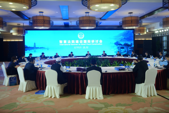 最高人民法院信息中心主任许建峰、江苏高院审判委员会专职委员谢国伟、苏州市委常委、政法委书记俞杏楠到会致辞。联合国开发计划署驻华代表处国别主任文霭洁通过视频致辞。研讨会上,孟加拉国最高法院主簿赛义德·阿明·伊斯兰,韩国大法院司法信息局司法信息主任李尚烨、司法信息管理部副主任赵釉锡,巴基斯坦白沙瓦高等法院法律文书官胡尔希德·伊克巴尔分别介绍了孟加拉国、韩国、巴基斯坦法院信息化建设的现状。最高人民法院、江苏高院、北京高院、上海高院、浙江高院、成都中院、苏州中院分别就各自在智慧法院建设过程中的经验和做法作了专题发言。与会代表还实地参观了苏州中院和苏州知识产权法庭信息化建设和应用情况,并就智慧法院面临的问题及未来发展方向进行了座谈。