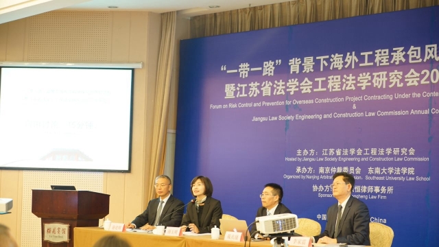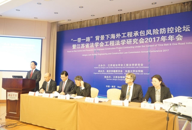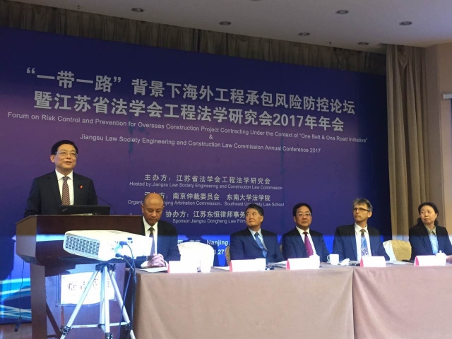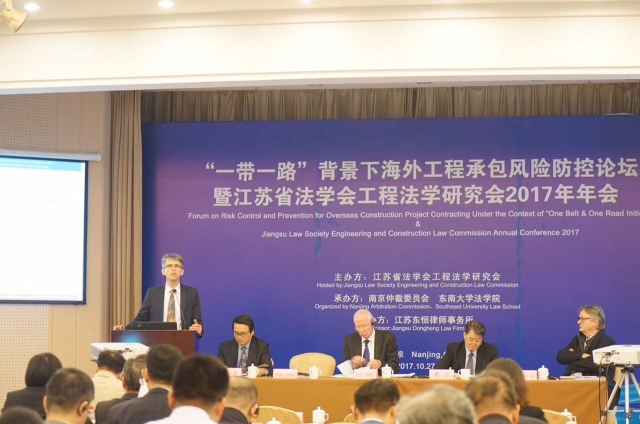 2017年10月27日,“一带一路”背景下海外工程承包风险防控论坛暨江苏省法学会工程法学研究会2017年年会,在366net必赢官网四牌楼校区榴园宾馆隆重召开。本次研讨会由江苏省法学会工程法学研究会主办,南京仲裁委员会和366net必赢官网承办,江苏东恒律师事务所协办。会议邀请到来自德国、匈牙利、我国台湾地区的多位境外学者作为特邀嘉宾出席;同时,来自法院、仲裁委、律所和行业企业等实务部门和全国多所高校的140余名专家学者参加了本次研讨会。