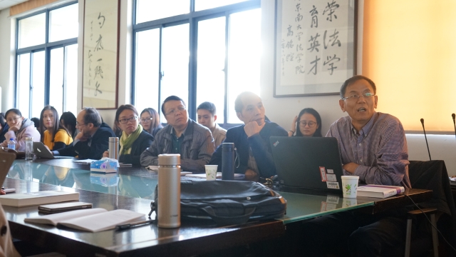 高其才教授首先界定了所讲习惯法的概念,特指“独立于国家制定法之外的依据某种社会权威和社会组织,具有一定的强制性规范的总和”,即非国家法范畴的习惯法。然后分别从三大方面进行讲解:一是现代法治建设中习惯法的存在;二是现代法治建设中习惯法的价值;三是现代法治建设中习惯法的容纳。在报告中,高其才教授展示了大量丰富的田野调研图片及相关案例资料并且现场示范,以现身说法使在座师生对习惯法的存在、价值及容纳问题有了深刻的理解和认识。报告结束后,高其才教授与在座师生进行了交流,并就学生提出的“习惯法和国家法的矛盾冲突如何解决”这一问题进行了详细解答,指出应以国家法为中心,具体实践中则分对象、看情况、按阶段及相互协商来解决彼此冲突问题。据此,进一步指出当前趋势是现代法律已考虑到现实情况需要,开始慢慢吸收习惯法中的合理部分。为此,高教授总结说,习惯法具有规范性、文化性、内生性和适应性。在中国现代法治建设中,应当正视习惯法的客观存在,发挥习惯法的积极功能,传承习惯法的文化脉统。接下来,高教授又特别对必赢法理学教研室各位老师撰写的科研论文进行了指导,对于每篇论文都提出了切实而具体的修改意见,各位老师深受启发,获益匪浅,极大促进了法理学教研室的整体科研水平。