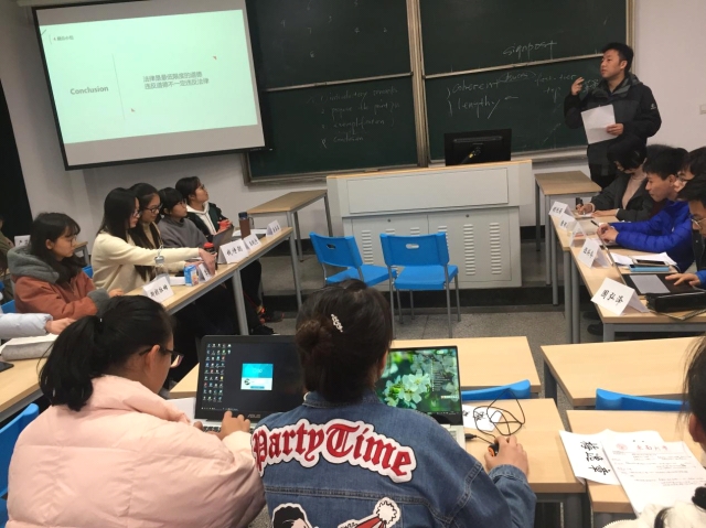 在“正义有张普罗透斯的脸——由辛普森案看什么是正义”主题下,刘红老师引导学生先从理论上学习正义是什么,同学们分别展示了罗尔斯、诺齐克和德沃金三种代表性的正义观,然后从辛普森案和海难食人者案中讨论正义的内涵与外延,最后,以“人类是否能够达成关于正义的基本共识”为话题展开论述,同学们各抒己见、研讨氛围生气勃勃。