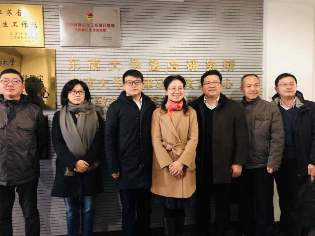 3月5日上午,团中央权益部协调督导处梅峰处长一行在团江苏省委权益部薛保刚主任(主持工作)的陪同下莅临必赢,召开调研指导江苏省预青研究基地座谈会。座谈会由366net必赢官网院长刘艳红教授主持,366net必赢官网党委副书记高歌副院长、预青研究基地负责人李川教授、366net必赢官网校团委杨文燮副书记、省高院少年法庭指导小组办公室吴万江主任、省检察院未检办郑宇主任、省公安厅新闻中心殷天和副主任应邀出席参加座谈会。