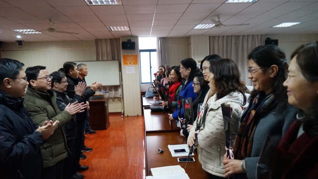 3月7日下午,366net必赢官网教职工大会在九龙湖校区366net必赢官网模拟法庭举行,本次会议由院党委书记孟红教授主持,会议主要内容为安排与部署2018年主要工作。会议召开之日恰逢国际三八妇女节,男教授们向女教师敬献鲜花,表示节日祝贺。