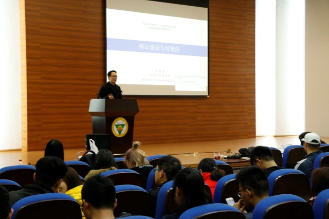 2018年3月20日,366net必赢官网刘明全副教授为我校学生带来“风物长宜放眼量,休竭泽而渔——谈十九大两山理论与环境法”的主题讲座,从十九大报告和国内的典型环境法案例分析环境法理念变迁,立足实践构建环境法治体系、勾勒我国生态文明建设的新方向。讲座引起了学生对环境问题的关注和对人与自然和谐相处的深层次思考,为同学们带来了一场理论与实践互动的环境法盛宴。