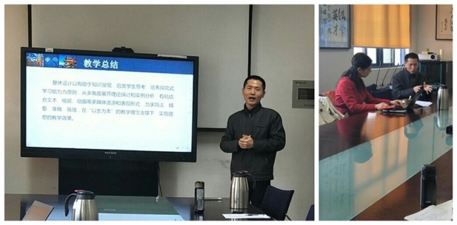 会议伊始,参会老师集体观摩微课竞赛的参赛视频,并展开讨论,从讲课风格、讲授内容、课件展示等方面分析各位参赛者的优缺点。接下来外国语学院李晨老师分享自己的参赛经验,李老师结合自身参加微课比赛的准备过程,提出优秀微课的五项标准:准确吸引人的标题、特色恰当的内容、创新为学的设计、充分合理的技术、精湛怡人的讲授。同时李老师对必赢刘建利、王玮玲两位老师的参赛视频进行点评并提出提升与改进的建议:选题要聚焦、讲课要体系,制作要精良等。此外,各位老师也积极表达对微课的观点:无论是在内容还是制作上都需要进一步努力。