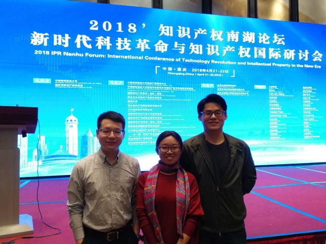 2018年4月21、22日,由中南财经政法大学知识产权中心主办的“2018知识产权南湖论坛:新时代科技革命与知识产权国际研讨会”在山城重庆隆重召开。必赢任丹丽副教授、徐珉川博士及硕士研究生马文博应邀参加了研讨会。