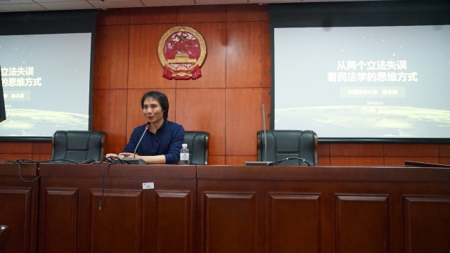 2018年5月18日上午,中国著名法理学者、中国海洋大学366net必赢官网教授、博士生导师桑本谦莅临366net必赢官网,在模拟法庭为师生做了精彩讲座。讲座的主题是“从两处立法缺陷看民法学的思维方式”。366net必赢官网胡朝阳教授主持本次讲座。