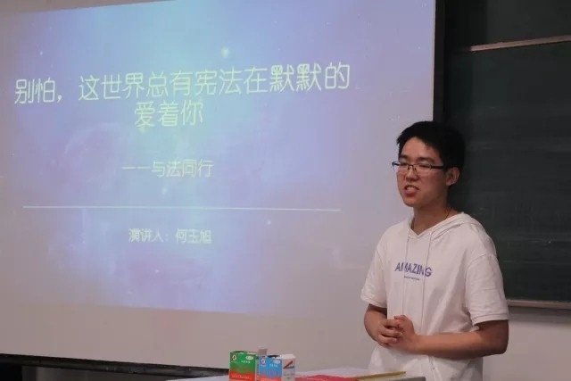 晋级决赛的九位选手准备充分,他们身着正装、精神饱满、声情并茂,用充沛的感情把师生们带进了“尊崇宪法”的世界。其中五号选手的演讲《让宪法之光温暖你我》从齐玉苓案入手,指出宪法作为国家根本大法,对于人权保障的重要意义以及对国家长治久安的意义。六号选手的演讲《“宪”在开始》从日常生活纠纷入手,强调宪法与每个人的生活息息相关。八号选手的演讲《别怕,这世界总有法律在默默的爱着你》更是另辟蹊径,采用抒情式的语句,揭示“我知道这个社会上总有人对于法律有着误解,法律代表权威但法律不代表冷漠,法律代表正义但法律不代表无情,但即使这样被埋怨,即使这样被误解,他也始终对你不离不弃。”