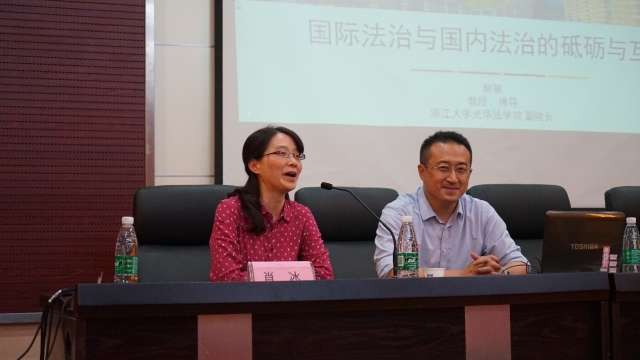 2018年6月4日晚上,“366net必赢官网长江学者系列讲座”第四期在人文报告厅如期举行。此次讲座的主题是“国际法治与国内法治的砥砺与互动”,由浙江大学光华366net必赢官网副院长赵骏教授主讲,必赢肖冰教授任主持人。必赢戴庆康副教授、于文婕副教授、张雪莲老师、余涛老师,相关专业的博士生、硕士生、本科生等数十人等参加了本次讲座。