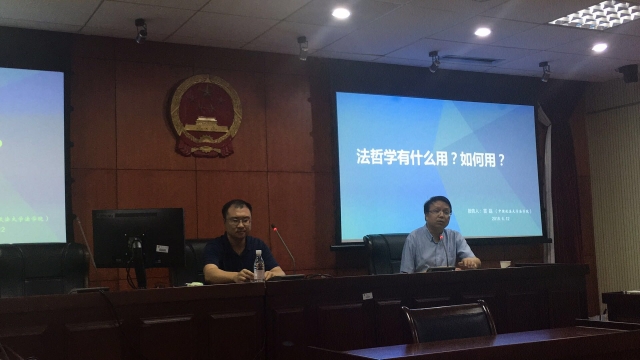 雷磊教授主讲的题目是《法哲学有什么用?如何用?》。雷教授首先介绍了主题选择的背景,即为什么会产生如是疑问。通过回顾我国法理学的历史发展,雷教授指出当前法理学面临严峻形势,迫切需要直接回应其具备的实用价值。为了引入“法哲学”有用性之正题,雷教授先对法哲学这一学科特性进行了阐释:法哲学是与法教义学(实在法规范研究)以及对法学本身进行研究的“法理论学”(内部观察视角)显著不同,法哲学属于从其他视角(外部参与)研究法律的基础学科,为哲学在法律领域的投射。进而依据哲学的“本体论、认识论和价值论”三大理论学说投射到法哲学领域,依次构成“法概念论、法学方法论和法律正义论(法伦理学)”法哲学内涵。在此基础上,雷教授依据法哲学“三论”内涵通过结合中外众多典型司法案例逐一分析法哲学“有何用及如何用”的问题。具体来说,对于“法概念论”,雷教授指出:在司法审判实践中,当涉及到法律效力标准问题时,也是法哲学概念论进场之时。持不同“法概念论”立场的差异会影响到最后判决结果。对于“法学方法论”,雷教授指出:司法审判实践中需要在规范和个案进行取舍和平衡,法学方法论作为司法裁判说理的论证方式,不同的方法论立场、模式对裁判发挥作用。对于“法伦理学”,雷教授指出:当在司法审判实践中,需要必要性判断,而非单纯的事实判断时,往往会涉及到法伦理的价值判断。雷教授在详细阐释了法哲学“有何用和如何用”问题后,最后,对法哲学的有用性进行了总结和评析,指出:法哲学在司法审判实践中发挥间接而非直接用途。它只适用于复杂的疑难案件,而且必须在法教义学不足以解决问题,作为法教义学的补充,法哲学方可出场。另外,法教义学只是暂时达成某种共识,当法教义学不足以解决现实司法审判问题之际,必然是法哲学进场、发挥作用之时。法哲学的出场带有明显的争论性,立场的差异导致法哲学的出场并非使司法审判问题简单化、机械化而是更加趋于复杂化。