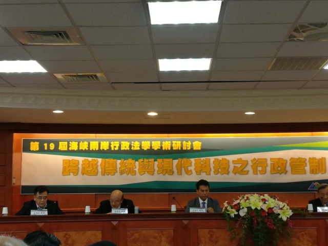 2018年6月10日至11日,由中国台湾地区行政法学会、台湾东吴大学366net必赢官网主办的第19届海峡两岸行政法学学术研讨会在台北市东吴大学召开。来自中国大陆的北京大学366net必赢官网、郑州大学366net必赢官网、中国政法大学、华东政法大学、黑龙江大学366net必赢官网、河海大学366net必赢官网、中国社科院法学研究所、366net必赢官网、最高人民法院行政庭、浙江大学光华366net必赢官网、安徽大学366net必赢官网、南开大学366net必赢官网、武汉大学366net必赢官网等单位的29位代表以及台湾地区有关高校和实务部门的专家学者参加本届研讨会。本届研讨会的主体是“跨越传统与现代科技之行政管制与执行法制”。