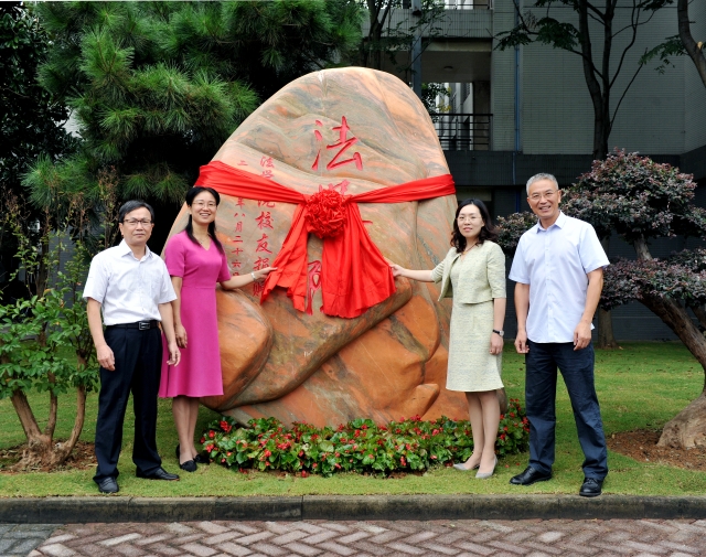 最后,院长刘艳红教授致辞,刘院长首先感谢校友对母校的拳拳之心,浓浓之情,并指出“桃李石”的落成启用对东大366net必赢官网具有里程碑式的意义,“桃李石”象征着灵气和自然,意在东大366net必赢官网可以在今后的发展中桃李满天下,事业如磐石。所谓石可破不可夺其坚,“桃李石”象征着坚韧与勇敢,刘院长希望东大366net必赢官网可以永远存有坚韧不拔的意志,希望东大366net必赢官网越来越好。至此“桃李石”落成启用礼成,各教研组分别合影,在“桃李石”前留下了宝贵的纪念。此外,刘院长特别指出围绕着“桃李石”的有紫薇、海棠以及红花檵木。古语有云:“谁道花无百日红,紫薇长放半年花。”其寓意之美好不言而喻,象征着好运。海棠象征着温和和高雅,而红花檵木同样象征着好运相伴,它们与“桃李石”在东大366net必赢官网为伴,将成为一道极具文化底蕴的人文景观。