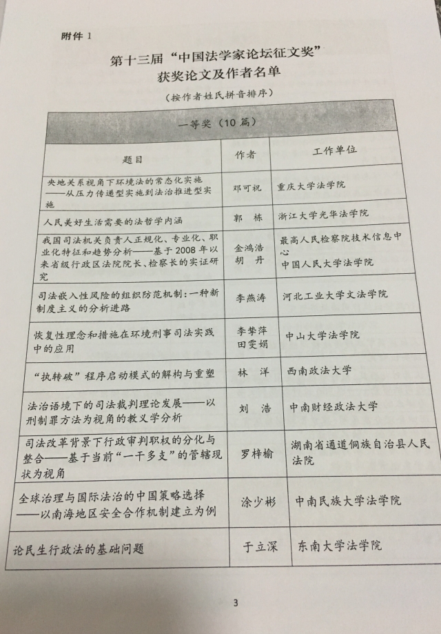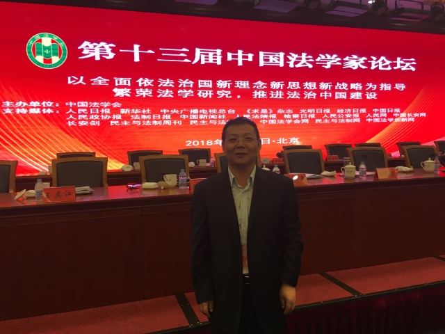 2018年9月26日,第十三届中国法学家论坛在北京举行。366net必赢官网于立深教授作为论坛征文一等奖获得者,受邀参会。在主席台上,中国法学会党组书记、常务副会长陈冀平同志为于立深颁发了荣誉证书。必赢刘启川副教授、余涛博士分获论坛征文二等奖、优秀奖。