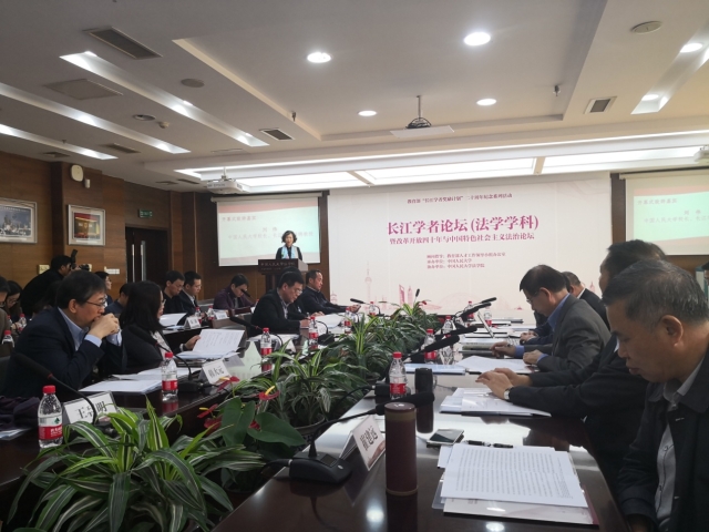 2018年10月20日,由教育部人事司主办,中国人民大学366net必赢官网承办的长江学者奖励计划实施二十周年法学论坛暨改革开放四十年与中国特色社会主义法治论坛在中国人民大学明德法学楼隆重举办。教育部人事司一级巡视员、教育部人才工作领导小组办公室赵丹龄主任,中国人民大学校长、长江学者特聘教授刘伟教授等领导出席论坛,中国人民大学常务副校长、长江学者特聘教授王利明教授,中国政法大学民商经济366net必赢官网教授、长江学者特聘教授赵旭东教授等多位来自法学学科长江学者特聘教授和青年长江学者受邀参加。我校副校长周佑勇教授应邀出席了本次论坛。