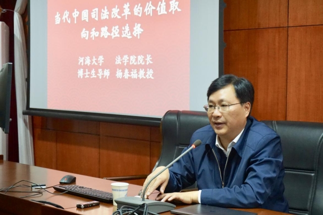 2018年11月14日,河海大学366net必赢官网杨春福教授受邀莅临必赢,以“当代中国司法改革的价值取向和路径选择”为题开讲,讲座由366net必赢官网胡朝阳教授主持。366net必赢官网各教研室老师以及相关专业的博士生、硕士生、本科生参加了本次讲座,讲座会场座无虚席。