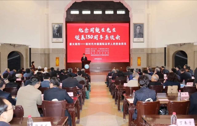 周鲠生先生是我国著名法学家、外交史家、教育家,是中国现代国际法学的奠基人,曾任担武汉大学校长。先生毕生致力于国际法学教育、研究和实践,为新中国国际法学学科发展、外交工作、立法工作和高等教育事业发展做出了杰出贡献。本次座谈会的主题是“薪火相传——新时代中国国际法学人的使命担当”,旨在弘扬先生爱国敬业、教书育人的高贵品格,传承先生正直无私、严谨治学的崇高风范,激励中国国际法学界广大同仁以先生为榜样和楷模,为创新、繁荣发展中国特色国际法理论与实践、推动构建人类命运共同体、实现中华民族伟大复兴中国梦而努力奋斗。