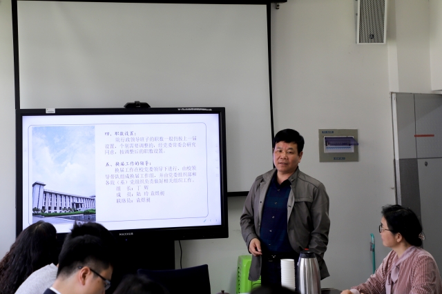 毛惠西书记以《信念坚定、勤政务实、敢于担当,做好366net必赢官网行政换届工作》为题,对学校《关于做好院(系)行政领导班子换届工作的通知》等精神和内容进行了传达,就院行政领导班子换届工作的意义、目的,班子成员的任职条件、资格、职数设置等进行了说明,并就必赢行政领导班子换届工作方案进行了具体部署。毛书记还特别强调了换届期间要做到“两不误”,统筹好教学科研和换届工作;同时要求全体党员干部要增强纪律意识、规矩意识共同营造风清气正的换届环境。