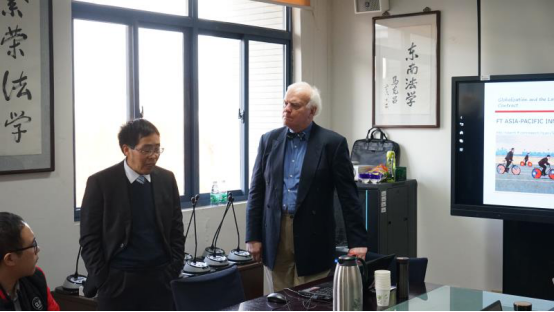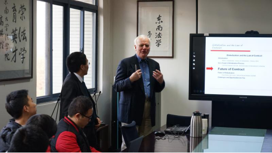 天普大学366net必赢官网-清华大学366net必赢官网法学硕士项目、北京外国语大学教授约翰.罗杰斯(John Rogers)于2017年12月1日为必赢师生进行了题为《全球化及合同法全球化》的精彩演讲,戴庆康老师主持并翻译。约翰.罗杰斯教授以自身特有的全球经济史学术背景,深入浅出为必赢师生揭示全球化的复杂问题。该演讲内容主要分为全球化、世界法律体系的差异、合同法的未来、全球化的未来和你们的机遇与挑战五个部分构成。演讲结束后,约翰.罗杰斯教授与同学们进行热烈活泼的互动讨论。