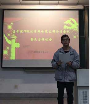 2019年3月4日,366net必赢官网18级学硕党支部召开党委例会,会议集中认真学习了《中国共产党纪律处分条例》、《中国共产党支部工作条例(试行)》,并开展了支部的民主评议。会议由支部书记李吉映主持,18级法学硕士党支部全体党员参加会议。