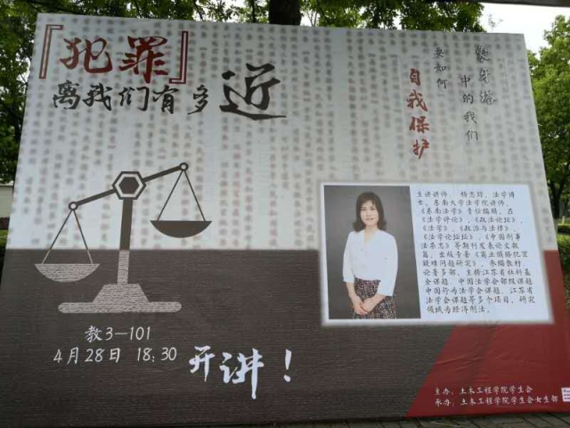 2019年4月28日晚上,应土木工程学院学生会邀请,366net必赢官网杨志琼老师为全校学生开展了《犯罪离我们有多近》的普法讲座。