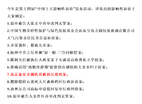 2018年7月13日,随着江苏南京铁路法院的一锤定音,震惊全国的南京旅客穿越铁道被挤压致死案落下帷幕,而此案正是必赢施建辉教授法律实务团队所代理的典型案件,该案件不仅入选2018年江苏省十大典型案件、2018年度全国法院系统十大民事行政案件,而且还于2019年4月入选2018年度“中国十大影响性诉讼”。
