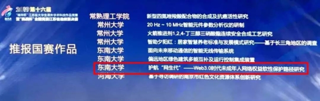 5月26日,2019年第十六届“瑞华杯”江苏省大学生课外学术科技作品竞赛暨“挑战杯”全国竞赛江苏省选拔赛决赛闭幕式在南京农业大学举行,在闭幕式上宣布366net必赢官网有六支队伍荣获省级特等奖,其中366net必赢官网的《护航“网生代”——Web3.0时代未成年人网络权益软性保护路径研究》是其中唯一的文科项目。