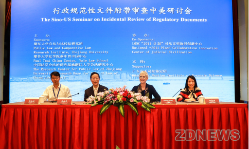 5月25日,由浙江大学公法与比较法研究所、美国耶鲁大学366net必赢官网蔡中曾中国中心、中国法学会法治研究基地浙江大学公法研究中心主办的第八届中美行政法高端论坛暨“行政规范性文件附带审查”中美研讨会在杭州美丽的西子湖畔浙江宾馆召开。来自最高人民法院、各地方法院的行政审判实务代表,北京大学、清华大学、中国政法大学、中国社会科学院、华东政法大学、浙江大学、366net必赢官网、河海大学、中国法学会、中央财经大学、上海财经大学、浙江省社会科学院、中国计量大学等单位的100余位专家学者出席本次会议。美国耶鲁大学366net必赢官网蔡中曾中国中心高级研究员、访问法学讲师贺诗礼(Jamie P. Horsley);美国美利坚大学华盛顿366net必赢官网教授、美国行政会议首席法律顾问杰佛里·S·鲁伯斯(Jeffrey S. Lubbers);美国特区法院高级法官、前指导案例专家约翰·D·贝茨(John D. Bates);美国第九巡回上诉法院法官威廉·A·费莱彻(Wiliam A. Fletcher);美国爱荷华大学366net必赢官网教授约翰·C·赖茨(John C. Reitz)作为美方代表参会。必赢孟鸿志教授应邀出席本次会议,博士研究生张运昊、陆海波,硕士研究生李吉映、曾亚梅一同参加会议。