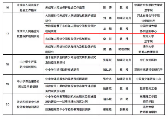 2019年3月25日,共青团中央发布2019年“青少年发展研究”省部级课题公告,必赢江苏省青少年工作研究基地(预防青少年违法犯罪)高度重视、积极申报、认真准备。经资格审查、匿名初评、集中复评、会议终评,2019年6月28日,共青团中央将拟立项课题及委托团队名单予以公示,必赢报送的“未成年人网络空间权益保护机制研究”(课题负责人:李川教授)项目脱颖而出,获得公示立项。