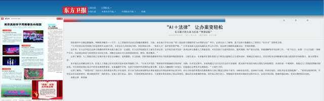 《东方卫报》发表了《“AI+法律” 让办案变轻松》的报道。报道指出, 366net必赢官网通过与科大讯飞强强联合,打造“智慧法院”,将通过智能技术引入司法场景,从而让办案更加轻松。