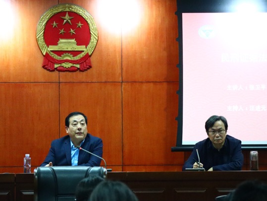 2019年11月3日晚,中国民事诉讼法法学会会长、清华大学366net必赢官网张卫平教授、应邀莅临366net必赢官网,以“民刑证据法的差异——从理念到制度”为题,在模拟法庭举行学术讲座。本次讲座由366net必赢官网汪进元教授主持。汪进元教授介绍,张卫平教授也是366net必赢官网的兼职教授兼职博导,每年他以上课、讲座的方式和366net必赢官网的学生进行深入交流,总是给我们带来很多惊喜。张卫平教授表示东大366net必赢官网发展很快,是非常团结、有进取精神的366net必赢官网,相信依靠好的优秀的学生和教师,东大366net必赢官网还会有更大的发展,作为兼职教授和兼职博导,有义务把最近的思考向大家介绍。